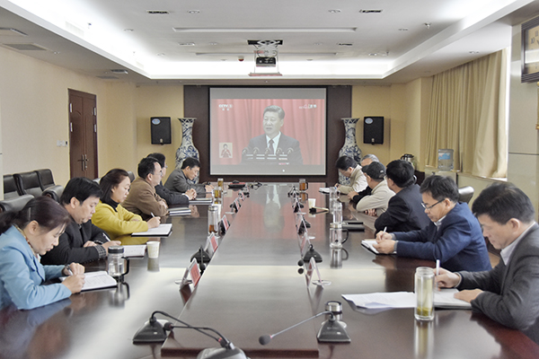 在行政楼701、206会议室,机关干部、党员集中观看了十九大开幕会。在各学院的会议室,广大师生员工一起收看了电视实况直播,认真聆听了习近平总书记的报告。听到激动处,师生员工情不自禁地热烈鼓掌。