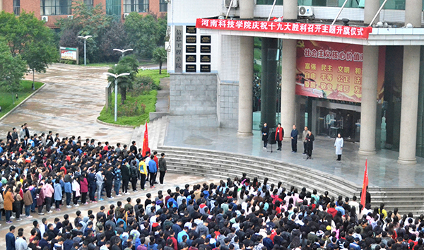 为迎接党的十九大胜利召开,增强广大师生的爱国主义、集体主义观念,展示我校学生团结奋进、蓬勃向上的精神风貌,10月18日清晨,在0#号楼广场前,信息工程学院和经济与管理学院联合举办“喜迎十九大,国旗照我心”主题升国旗仪式。信息工程学院、经济与管理学院负责人、教师、学生等共计2500余人参加了升国旗仪式。