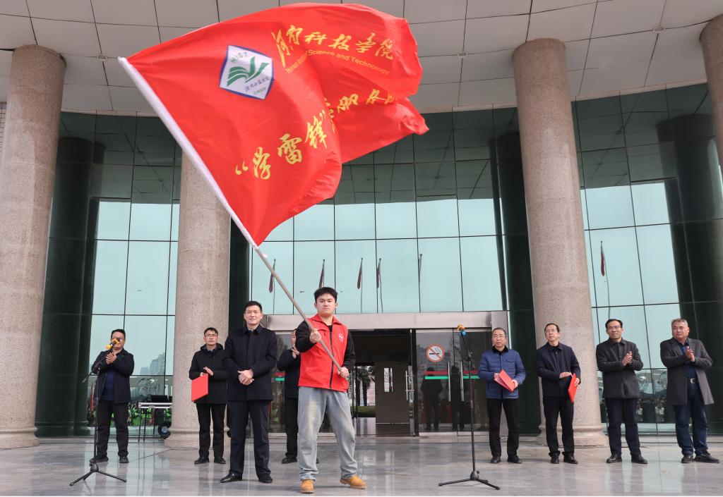 姚刚为志愿服务团队授旗,并就弘扬和践行雷锋精神提出四点期望和要求:一要坚定理想信念、筑牢精神根基,自觉做共产主义远大理想和中国特色社会主义共同理想的坚定信仰者和忠实实践者,让精神世界始终充盈信仰之光;二要深化文明实践、培育奉献品格,争做文明实践的倡导者、践行者,让雷锋精神“遍地生花”,让火热青春闪闪发光;三要不畏吃苦磨砺、激扬青春斗志,在苦学中砥砺坚强品格、激扬斗志,在苦干中增长才干、壮练筋骨,在祖国和人民最需要的地方奉献青春、建功立业;四要勇攀创新高峰、争做时代新人,锻造“锐意进取、艰苦奋斗”的品格,勇立时代潮头,勇攀创新高峰,坚持把论文写在祖国大地上,以创新创业的勇气智慧书写“强国有我”的历史担当。