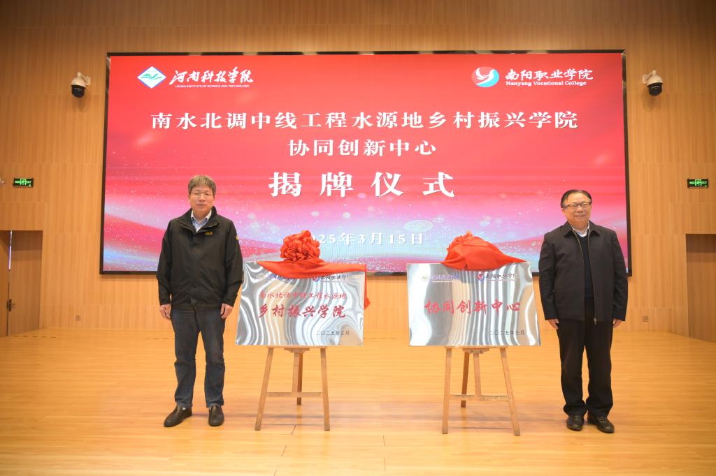 签约仪式后,阚云超、郭健生共同为南水北调中线工程水源地乡村振兴学院、协同创新中心揭牌。乐玉忠、董联军为乡村振兴学院院长、执行院长,协同创新中心主任、执行主任颁发聘书。