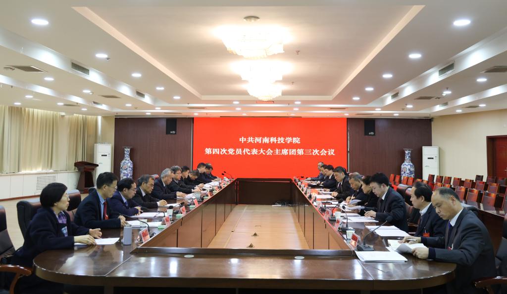 3月18日下午3:50,中国共产党河南科技学院第四次党员代表大会主席团第三次会议在办公楼206会议室举行。会议由校党委书记宋亚伟主持。