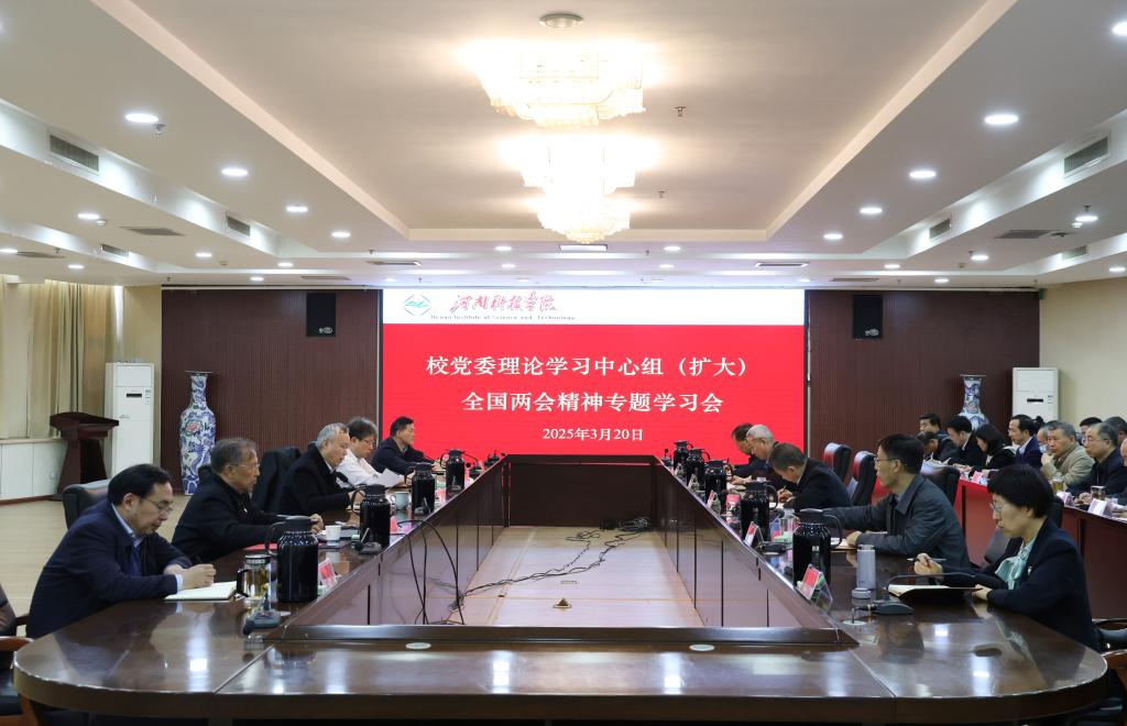 3月20日下午,我校在办公楼206会议室举行校党委理论学习中心组(扩大)全国两会精神专题学习会。校党委理论学习中心组成员、党的建设和全面从严治党工作领导小组成员,二级党组织书记参加会议。