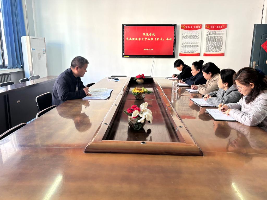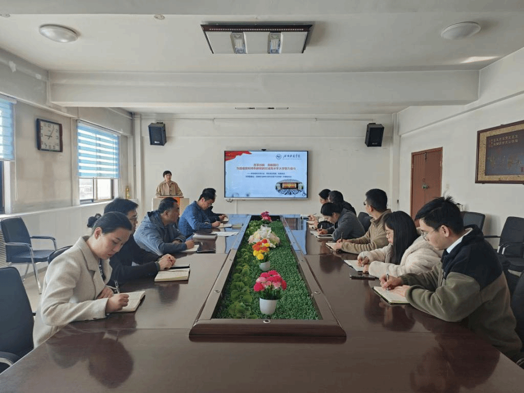 3月25日下午,高等职业技术学院在综合楼十楼第一会议室召开党委理论学习中心组(扩大)学习会,学院领导班子成员、党支部书记、系部主任及相关科室负责人参加会议。会议由学院党委书记孙敬坤主持。