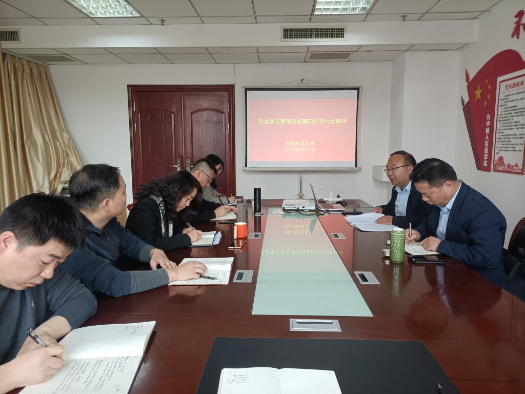 3月25日下午,科技处党支部召开专题会议,传达学习学校第四次党员代表大会精神,副校长丁轲出席会议。科技处全体同志参会,会议由科技处负责人主持。