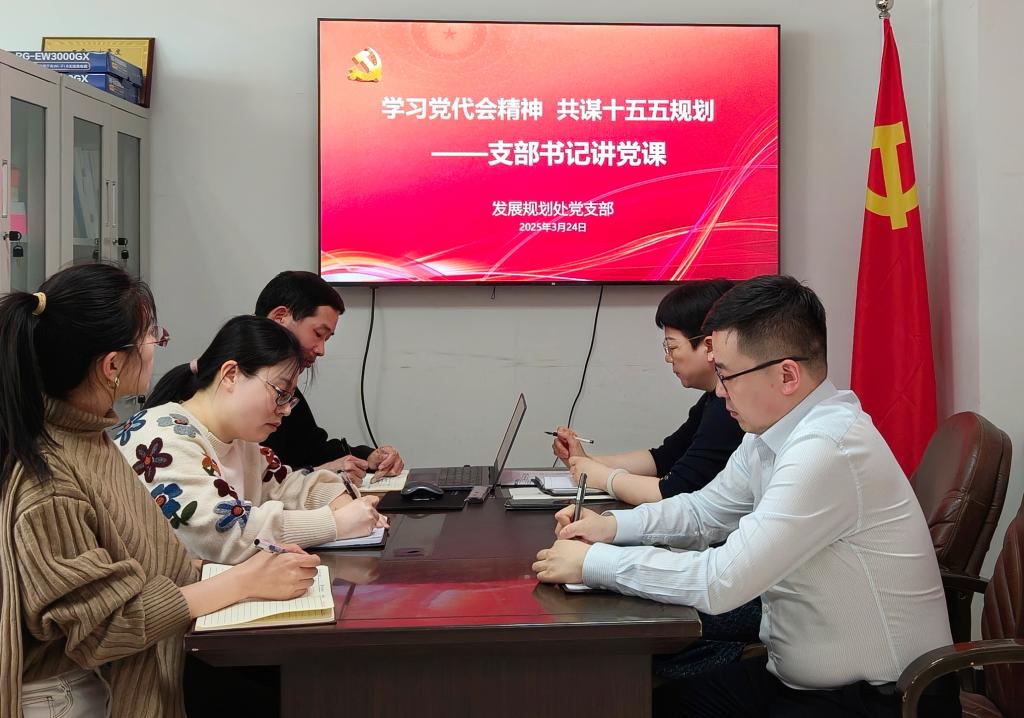 为深入学习贯彻学校第四次党代会精神,3月24日下午,发展规划处党支部在行政楼510办公室以“学习党代会精神共谋‘十五五’规划”为题开展专题党课。本次党课由党支部书记赵颖主讲,发展规划处党支部全体党员参加会议。