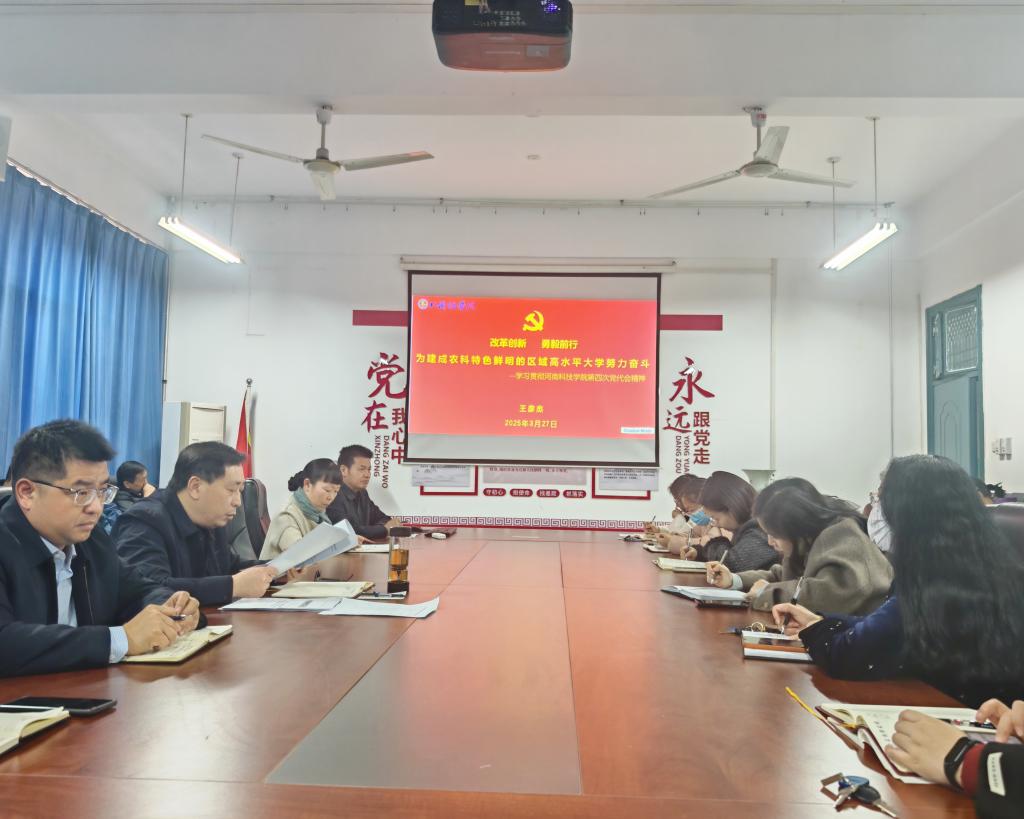 会议要求,全体党员要深刻学习领会学校党代会精神,认真抓好会议精神落实,切实以实际行动助力学校高质量发展,为建成农科特色鲜明的区域高水平大学而努力奋斗。