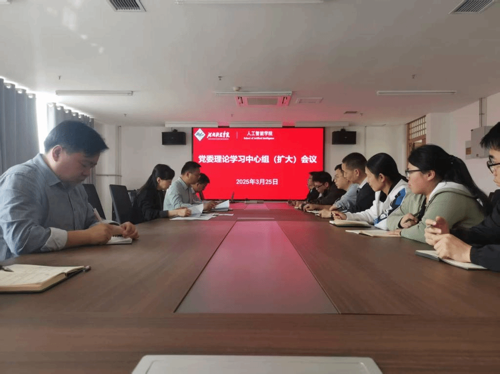 3月25日下午,人工智能学院在弘德楼A205会议室召开党委理论学习中心组(扩大)会议,专题学习学校第四次党代会精神。学院党委理论学习中心组成员、全体教职工参加会议。会议由学院党委书记叶晖主持。