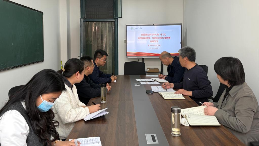 3月25日下午,数学科学学院于8号楼304会议室召开党委理论学习中心组(扩大)会议暨全国两会精神、校第四次党代会精神专题学习。会议由党委书记李军民主持,学院班子成员、党支部书记参加。