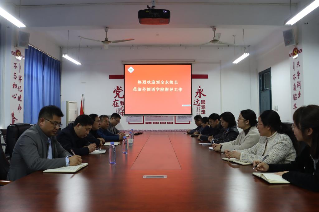 3月24日下午,副校长刘全永到外国语学院调研指导大学英语教学改革工作,外国语学院班子成员及骨干教师代表参加了调研会。