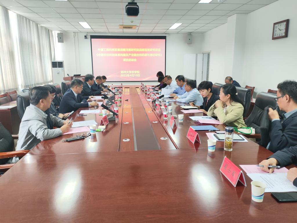 4月10日上午,我校承担的中国工程科技发展战略河南研究院战略咨询研究项目《中原农谷科创体系构建及与产业融合的机制与路径研究》开题报告会在郑州大学农学院举行。中国工程院院士、中国农科院农业资源与农业区划研究所副所长徐明岗,中国工程院院士、河南农业大学校长周卫,河南科技学院党委副书记、校长阚云超,河南牧业经济学院党委书记刘志伟,新乡工程学院校长罗士喜,中国工程科技发展战略河南研究院副院长韩一帆,郑州大学农学院院长李付广、执行院长焦浈、教授田保明,中国工程科技发展战略河南研究院综合事务部部长潘攀出席会议。子课题负责人河南牧业经济学院科技处处长潘春梅、新乡工程学院经济与管理学院院长任太增,我校科技处、乡村振兴研究院、经济与管理学院等单位相关人员及课题组成员20余人参加会议。会议由我校科技处负责人主持。