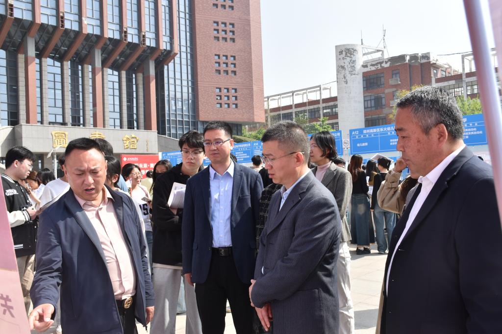 招聘会现场,胡铁柱深入走访参会企业,对各单位的到来表示热烈欢迎,感谢各单位长期以来对我校就业工作的大力支持。同时详细询问企业的人才需求和薪资待遇,听取企业对学校产教融合发展方式、人才培养改革方向的意见。
