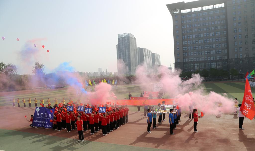 八时整,伴随着激昂的运动员进行曲,国旗护卫队、校旗队、校徽队、校训队迈着整齐的步伐向着主席台走来。随后,在鲜花队与彩旗队的引导下,裁判员队伍及各系方阵依次入场。他们迈着整齐的步伐,精神饱满、昂首阔步,依次走过主席台,“百农精神 薪火相传”“创新 智能 数字 科技”“深入贯彻中央八项规定精神”……口号声响彻运动场,充分展现了师生英姿飒爽、昂扬向上的精神风貌。