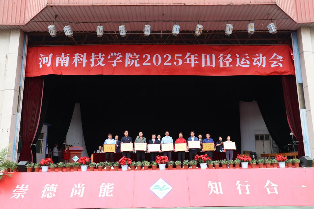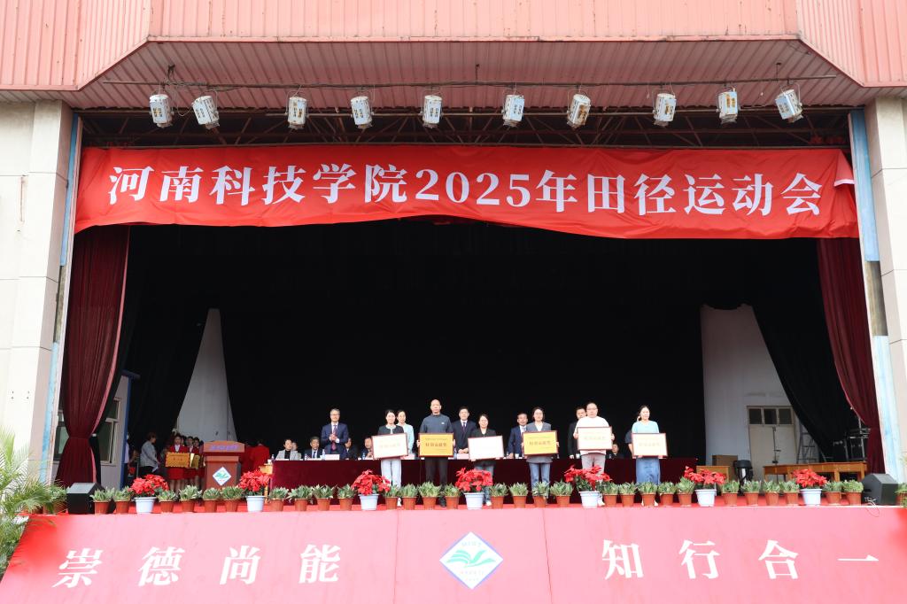 4月18日下午,我校2025年田径运动会闭幕式在西校区运动场举行。校党委副书记、工会主席姚刚、副校长刘全永出席闭幕式。