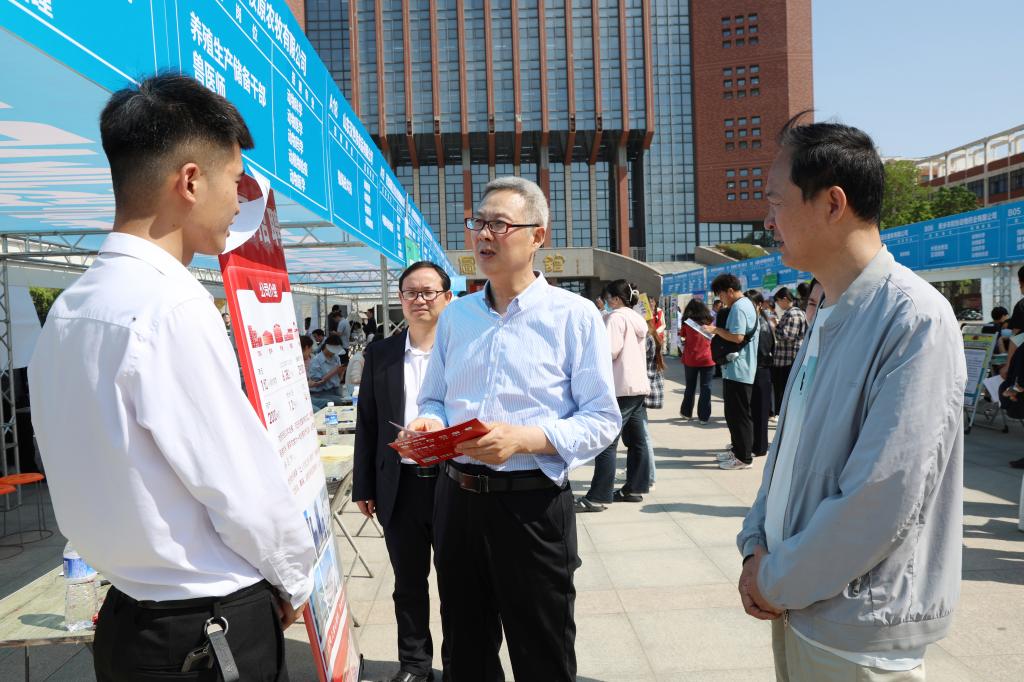 4月28日,我校2025年动物科技类专场招聘会在启智广场举行。副校长马金友到现场指导工作,学生处、就业创业指导中心、动物科技学院负责人及2025届毕业生参加。