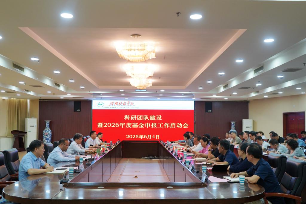 6月4日下午,我校在办公楼206会议室召开科研团队建设暨2026年度基金申报工作启动会。校党委副书记、校长阚云超,副校长丁轲出席会议。科技处负责人,各学院书记、院长、主管基金及团队业务副院长、学术副院长参加会议。会议由科技处负责人主持。