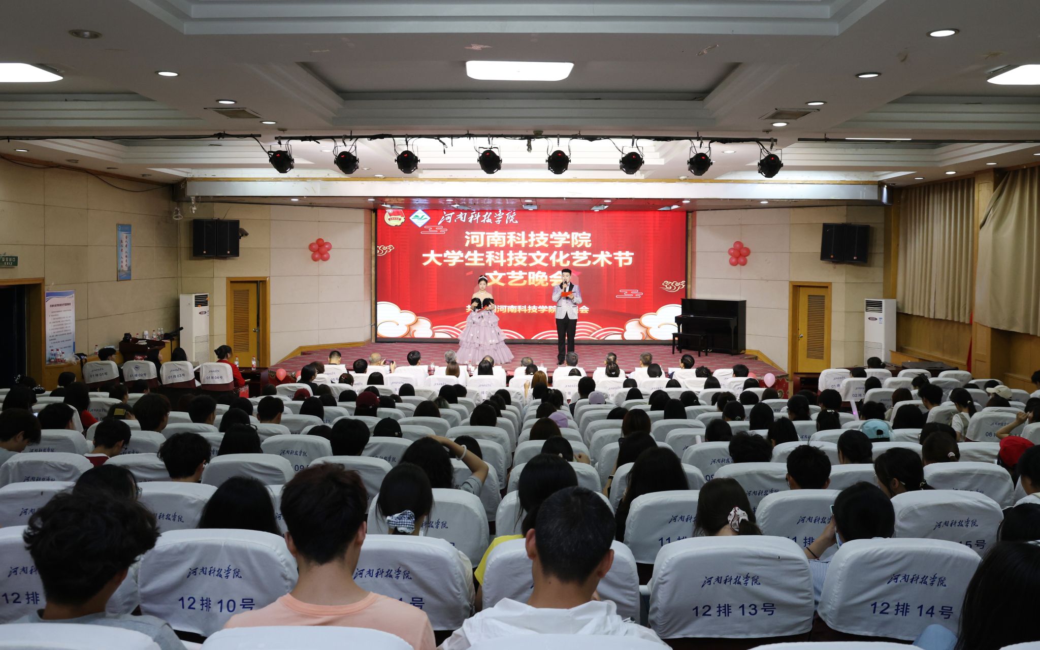 晚会现场高潮迭起,精彩纷呈。本次晚会涵盖歌曲、舞蹈、钢琴、民乐及戏曲的12个特色节目,演员们精湛投入的表演赢得阵阵雷鸣般的掌声与欢呼。穿插其间的有奖互动环节点燃全场热情,观众踊跃参与“校史校训知多少”抢答、“百农精神”核心内容讲解、以及反邪教知识竞答,现场气氛紧张而热烈,欢呼声、喝彩声一次次将晚会推向高潮。最后,晚会在全场合唱温暖动人的《这就是爱》中圆满落幕,深情的歌声镌刻下师生共同的美好记忆。