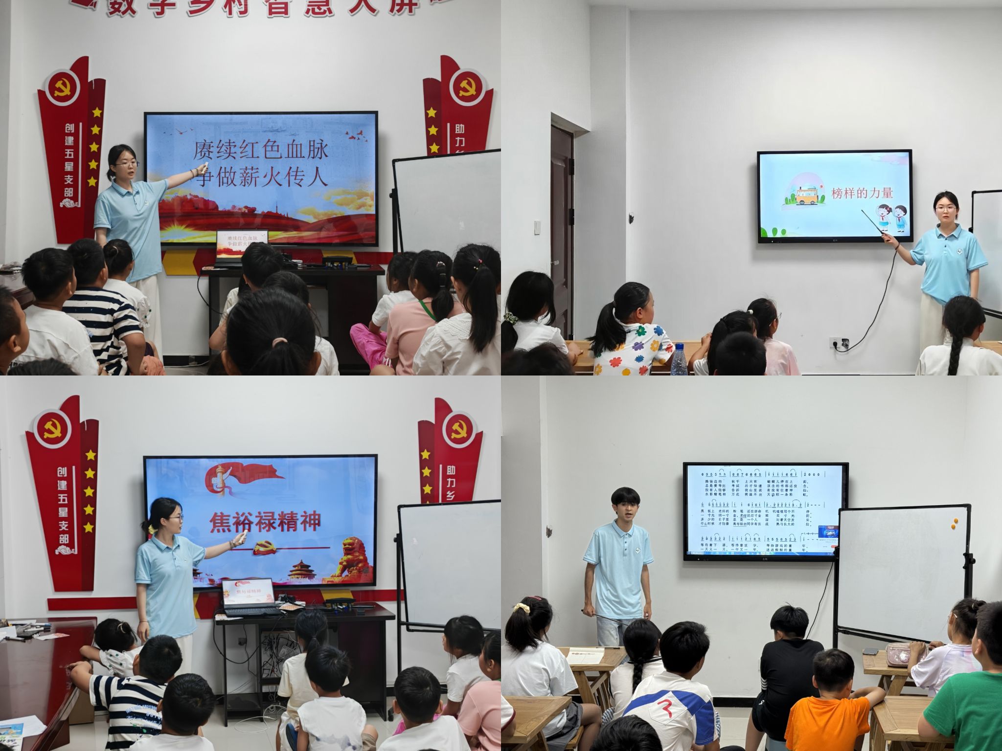 受省委组织部驻村工作队邀请,外国语学院“甘霖计划”大学生义务支教服务队到商水县汤庄乡西赵桥村开展党建引领公益支教活动。支教团队采用不同的教学方式进行授课,相继开展了文化课程、爱国主义教育课程、生命教育、安全自护等教育课程,助力孩子们度过一个七彩假期。