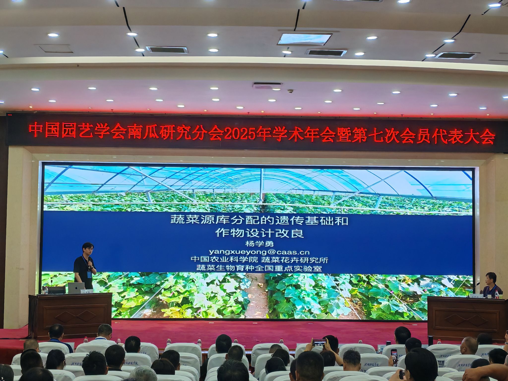 7月29日至8月1日,中国园艺学会南瓜研究分会2025年学术年会暨第七次会员代表大会在我校召开。本次大会以“‘南瓜上山下滩,不与粮田争地’‘南瓜绿色轻简化栽培技术模式’—南瓜新生产,新模式”为主题,旨在全面推进乡村振兴战略,发展农业新质生产力,促进南瓜产业健康发展。大会由中国园艺学会指导,中国园艺学会南瓜研究分会、河南省园艺学会主办,河南科技学院、新乡市科学技术协会承办,并得到了新乡市农业科学院、鹤壁市润丰农业发展有限公司、邓州市建国农副产品有限公司、新野县南瓜协会等单位的协办支持。来自全国科研院所、高等院校、推广部门及企业等60余家单位200余名代表参加了本次会议。