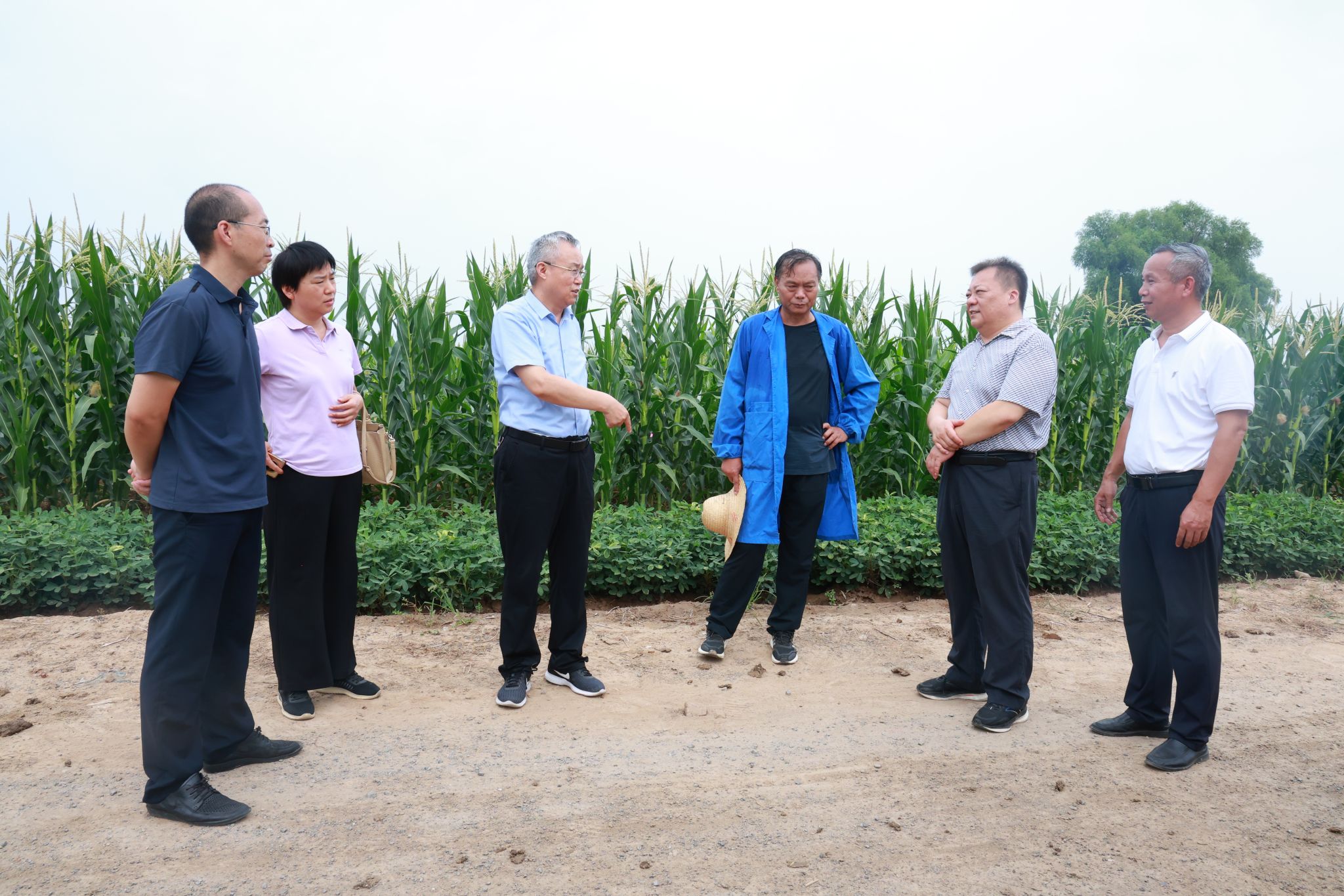 8月4日,校党委书记宋亚伟一行深入百泉校区志气田玉米试验基地,看望慰问顶着酷暑开展玉米田间授粉工作的陈士林、李友勇教授团队师生,实地调研玉米新种质研发与新品种培育进展。