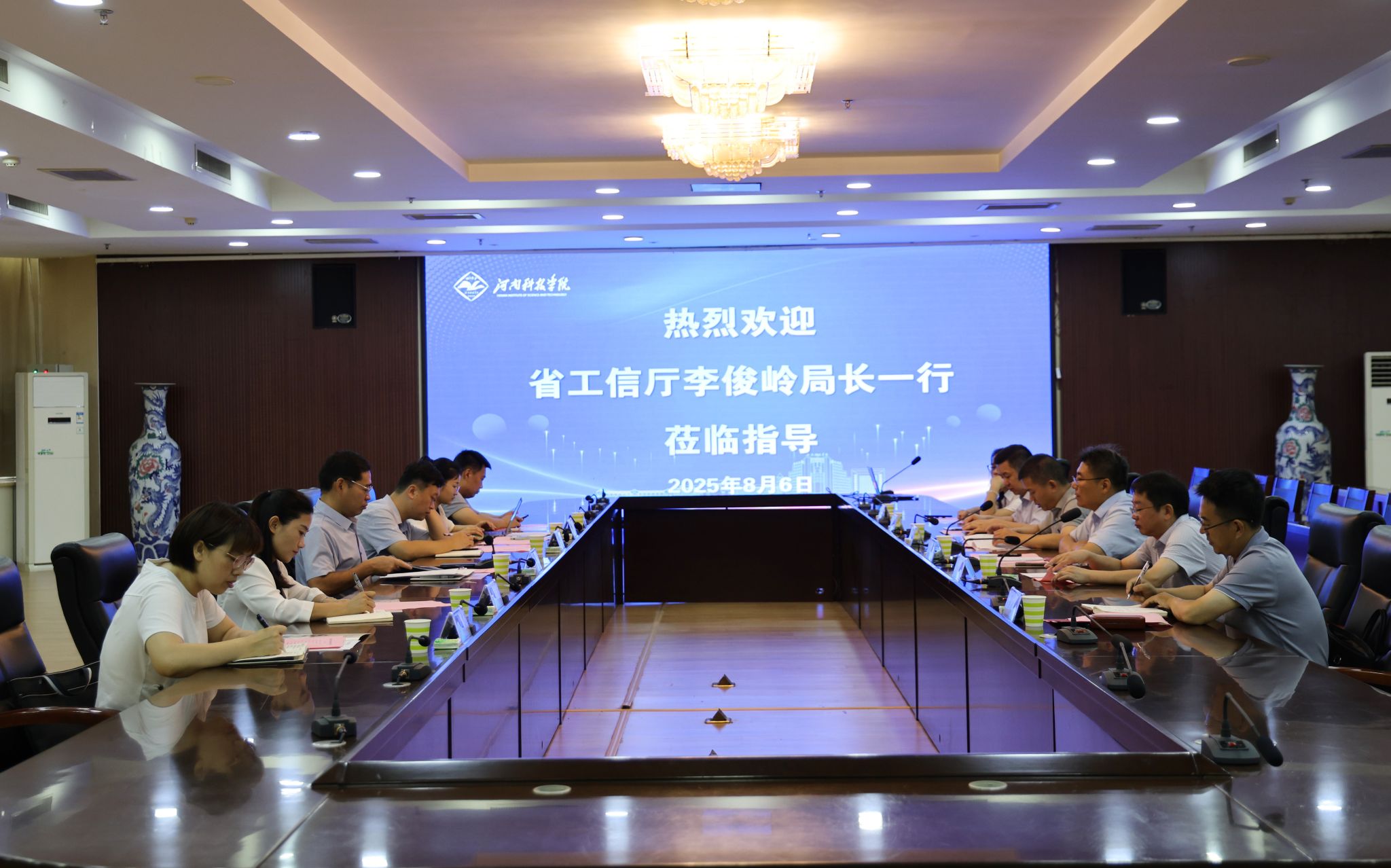 8月6日上午,河南省工业和信息化厅大数据产业发展局局长李俊岭、新乡市工业和信息化局副局长陈鹏飞等一行6人莅临我校,开展大数据产业融合创新中心和大数据创新人才培训基地建设情况专题调研。调研会在办公楼206会议室举行,副校长胡铁柱出席座谈会,信息工程学院、计算机科学与技术学院相关负责人及平台骨干成员参会,实验室与设备管理处负责人主持会议。