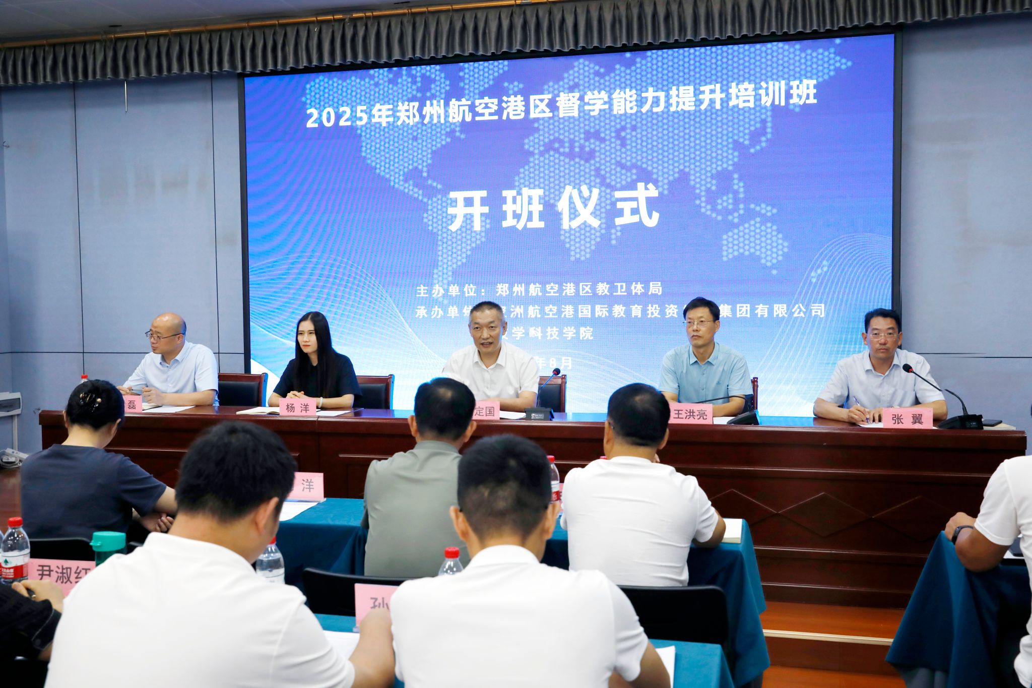 8月12日下午,2025年郑州航空港区督学能力提升培训班在我校学术交流中心举行开班仪式。河南科技学院副校长王洪亮、郑州航空港区教卫体局局长禹定国、教育局和教育集团相关科室负责人,继续教育学院、教育培训中心负责人,以及来自郑州航空港区的90名责任督学参加了开班仪式。开班仪式由教育培训中心负责人主持。
