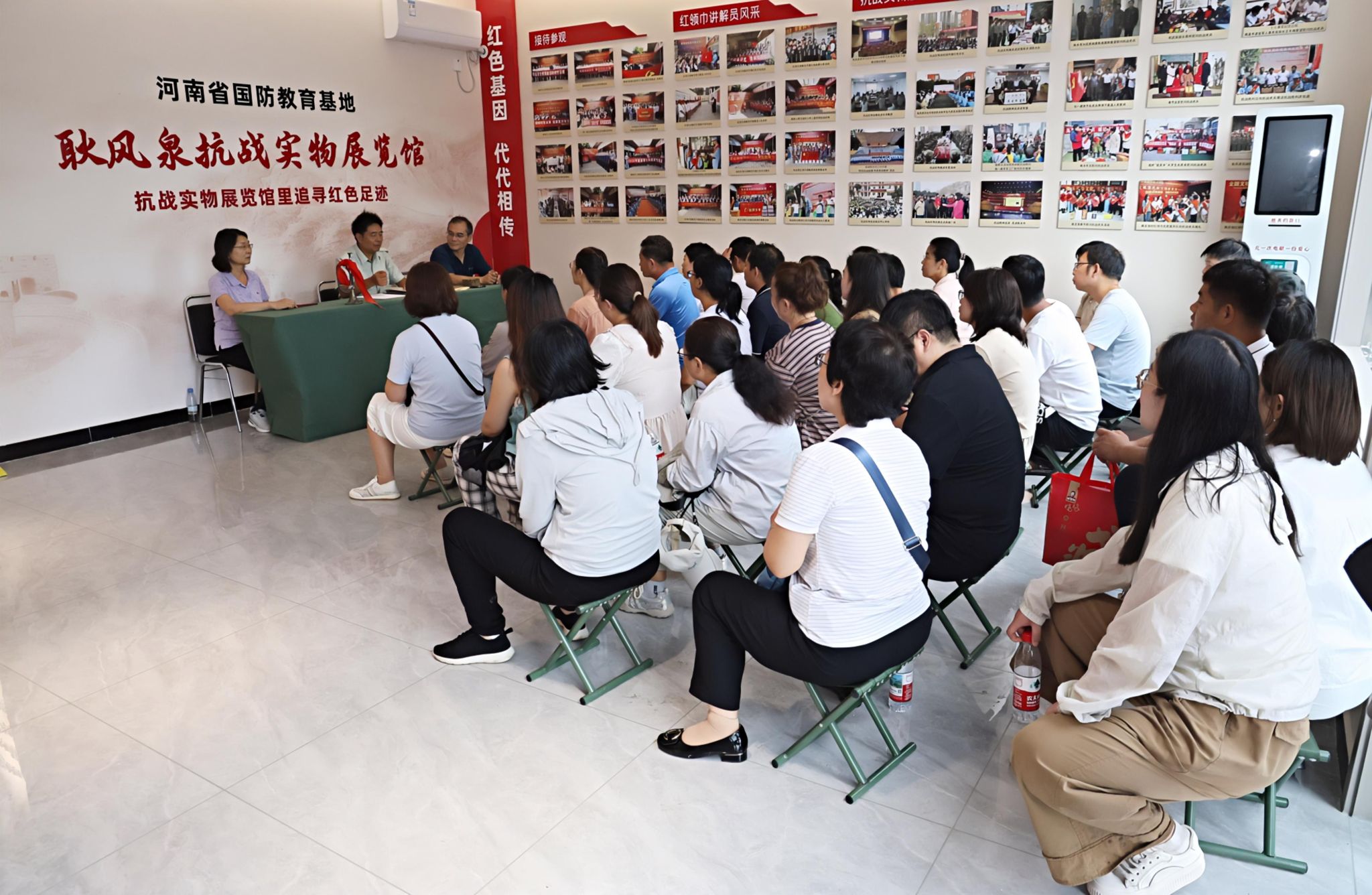现场教学与实地考察环节,参训教师前往辉县开展红色研学。在回龙村,教师们聆听感动中国年度人物、回龙村党总支书记张荣锁带来“回龙精神专题党课”,参观回龙村展览馆,直观感受回龙村在党的领导下实现的巨大变迁;在“中国好人”、抗战实物收藏者耿风泉的讲解下,参观抗战实物展览馆,实地研学抗战实物背后的红色故事,汲取抗战精神力量,进一步深化对革命历史的认知。培训期间,教师们还集体观看了电影《太行山上》,从影像中感悟革命先辈的坚定信念与无畏精神。