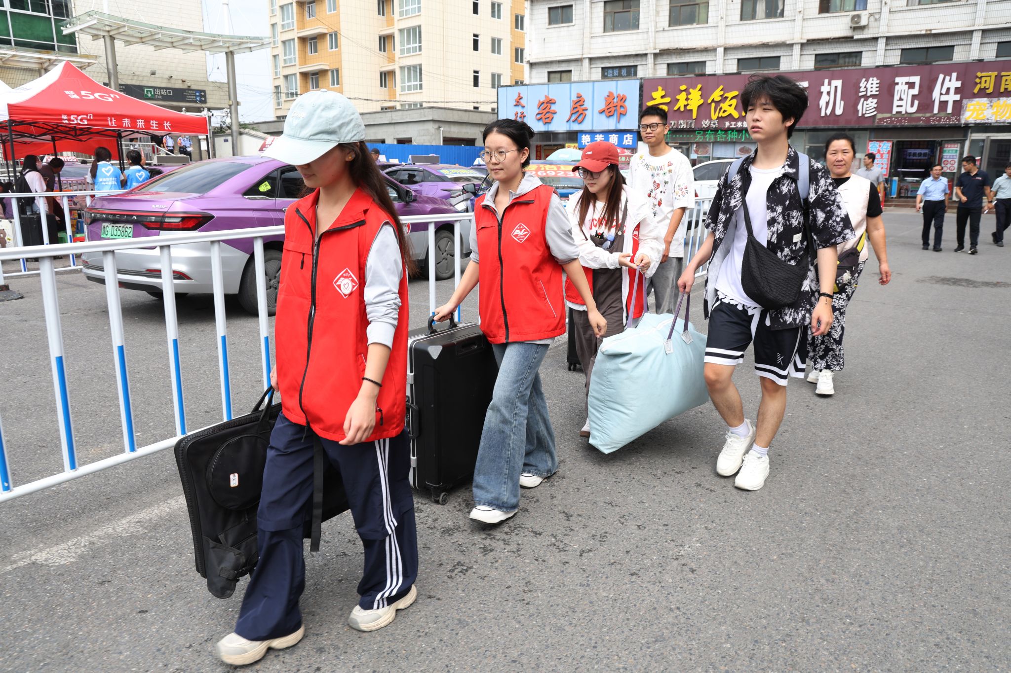 学校在火车站、高铁站、汽车站等地设置志愿者服务站,师生志愿者们以良好的精神面貌,细致耐心为新生和家长做好引导、解答疑问、组织乘车,用心用情让新生感受家的温暖。各部门、各学院通力协作,在宿舍安排、物资保障、交通疏导、安全保卫、氛围营造等方面做了充分准备,全力保障迎新环节无缝对接、现场报到高效有序、温馨周到。