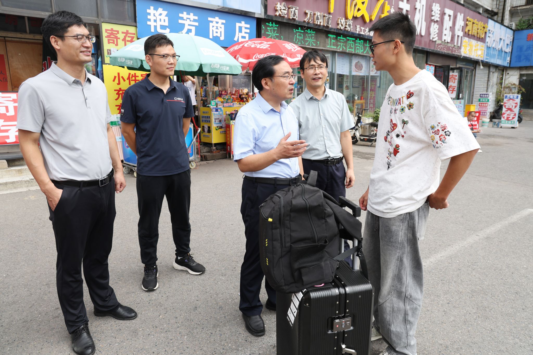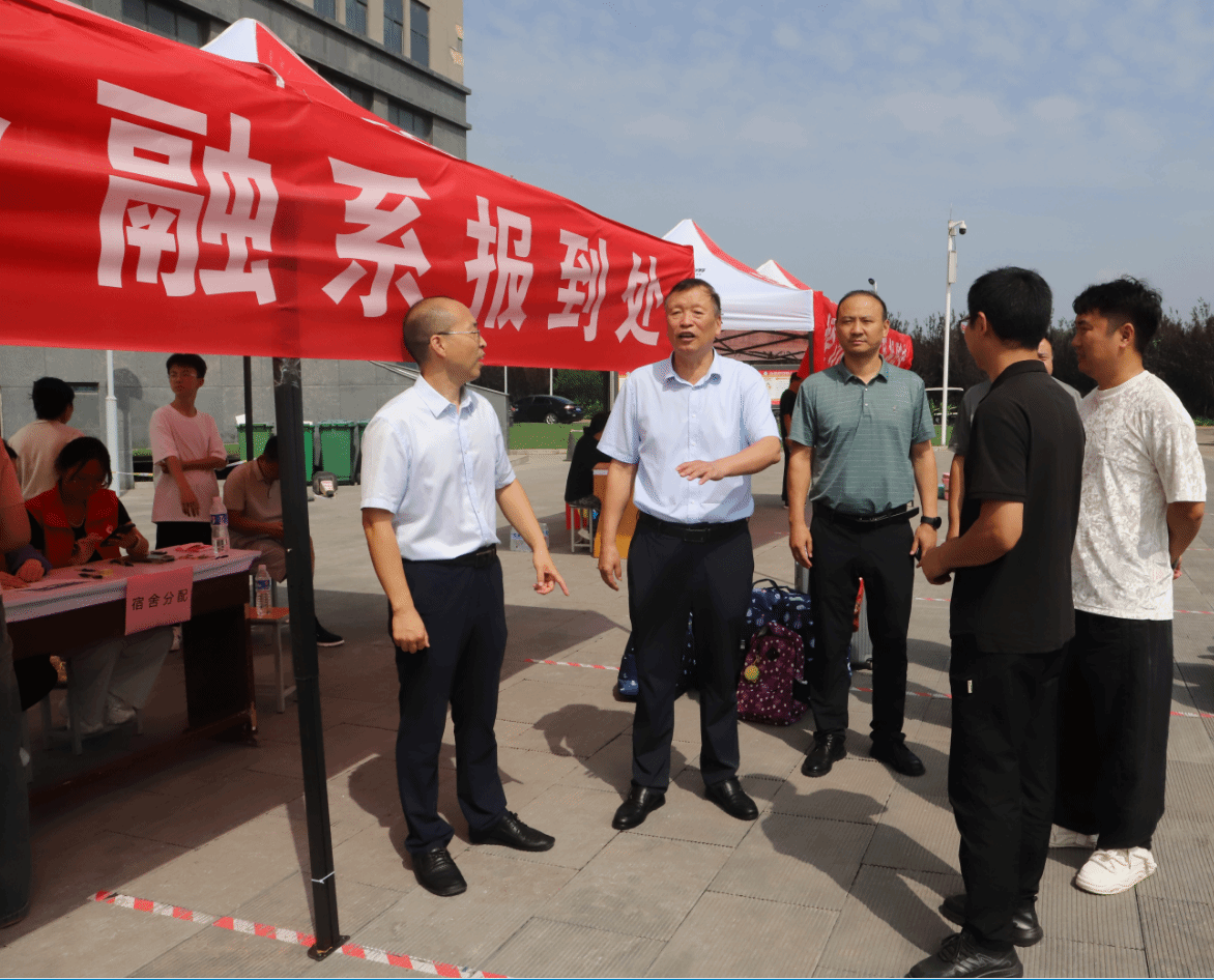 校领导王庆兵、刘全永、胡铁柱、王洪亮、马金友、王莉华、乐玉忠带领相关职能部门负责人深入各学院迎新接待点,细致察看新生报到情况,亲切慰问迎新一线的工作人员和志愿者,与新生及家长热情交流。王庆兵要求各部门、各学院要以高度的责任心,为新生提供周到细致的服务,始终坚持以学生为中心,确保各项工作落实到位,让新生从入学第一天就感受到“家”的温暖。在交谈中他勉励同学们尽快完成角色转变,适应新环境,融入新集体,珍惜大学时光,勤奋学习、全面发展,成就属于新时代青年的青春华章。
