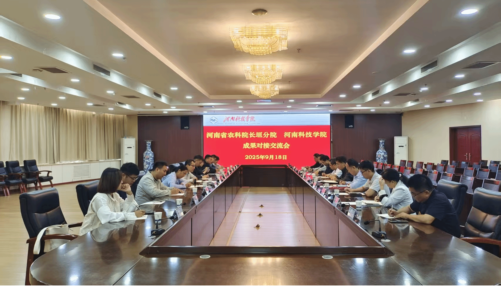 9月18日,河南省农业科学院长垣分院与我校的成果对接交流会在行政楼206会议室举行。河南省农业科学院长垣分院党委委员、党政办主任胡吉邦、长垣市循环经济产业发展中心主任袁国军等一行出席,我校成果转化与合作办公室负责人以及农学院、机电学院、食品学院、植物保护与环境学院、计算机科学与技术学院、人工智能学院等院系的教师代表参加。会议由成果转化与合作办公室负责人主持。