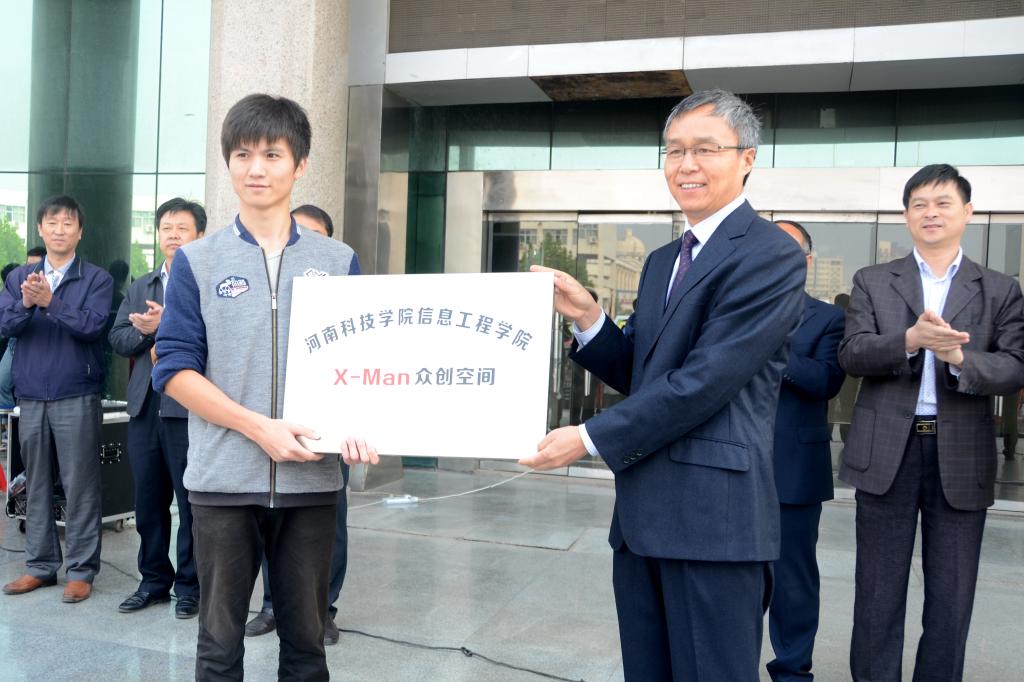 在热烈的掌声中,宋亚伟为信息工程学院X-Man众创空间授牌。