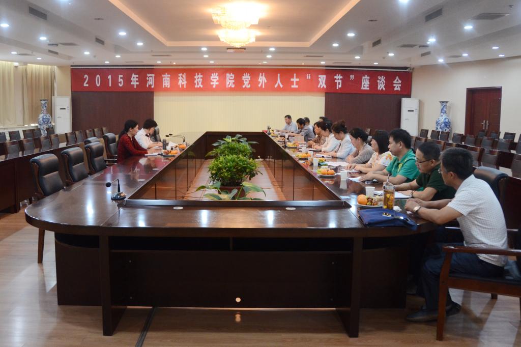 9月25日下午,我校在办公楼206会议室召开2015年党外人士“双节”座谈会。校党委副书记、工会主席张玉珍出席座谈会,在校的各级政协委员、各民主党派负责人、无党派人士代表、少数民族教工代表、出国留学归国人员代表等党外人士代表共18人参加会议。会议由党委统战部部长宋荷英主持。