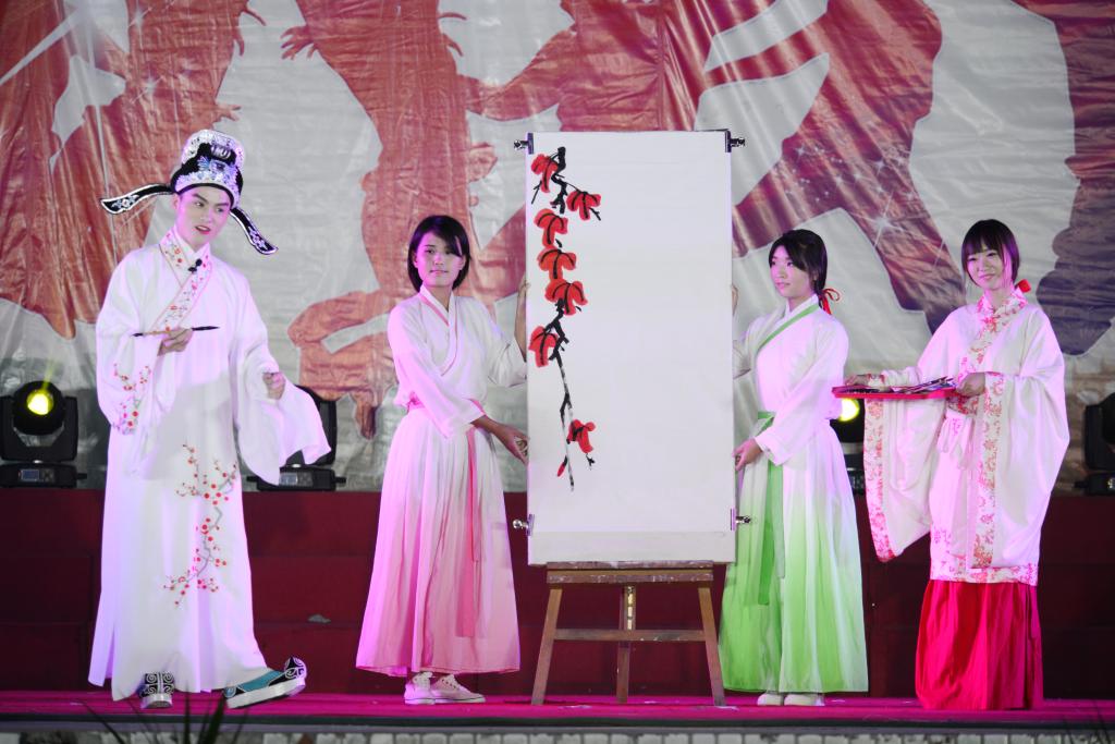 晚会在一首荡气回肠的抗战名曲大合唱《太行山上》中拉开帷幕,同学们用深情地演唱表达着铭记抗战历史、缅怀抗战英雄、弘扬伟大抗战精神的情怀。节奏鲜明的快板《德行天下》道出了要将社会主义核心价值观内化于心、外化于行,使中华美德代代相传的坚定决心;诙谐幽默的相声《满腹经纶》鼓励大家应该脚踏实地、勤奋学习,用真才实学报效祖国;古典舞蹈《山路弯弯》展现了我国少数民族优美的舞姿和丰富多彩的生活;四重唱《我是一名共产党员》展现了一名共产党员牢记党的宗旨、全心全意为人民服务的信念和意志;热力四射的原创歌曲《青春》唱出了大家风华正茂、英姿勃发,要用拼搏和奋斗书写精彩人生的自信与豪情。宛转悠扬的曲胡独奏、传统艺术表演豫剧和书法、悦耳动听的通俗歌曲串烧、动感十足的街舞表演……整场晚会形式多样、内容丰富,充分展现了我校学子朝气蓬勃的精神面貌和才华横溢的艺术风采。晚会在舞蹈《点亮未来》中圆满结束。