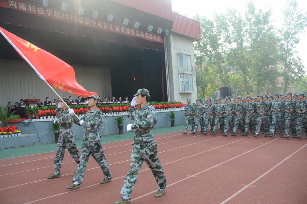2015级新生军训汇报表演及总结表彰大会在高亢的校歌声中圆满落下帷幕。