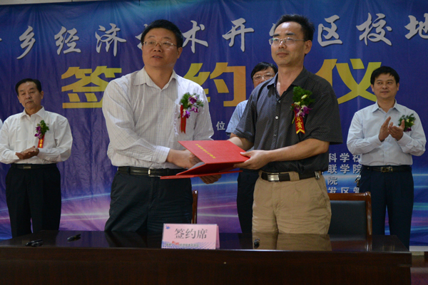我校及其他驻新高校分别与新乡经济技术开发区管委会签订了合作框架协议。会后,与会人员实地考察了经济技术开发区建设情况。