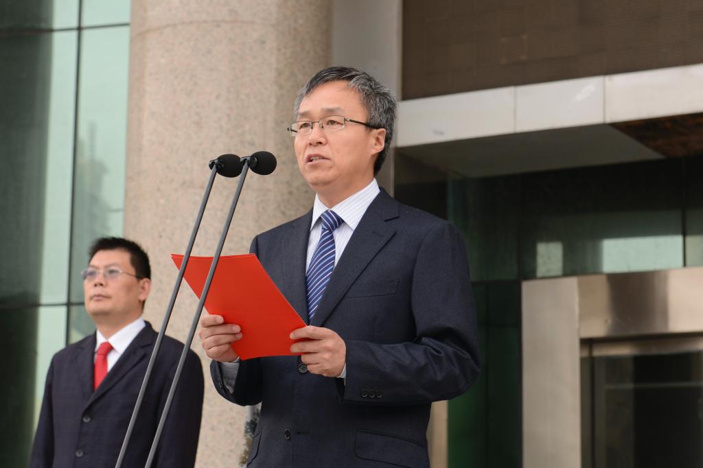 宋亚伟发表热情洋溢的讲话。他说,新中国即将迎来66岁生日,在这个充满收获和喜悦的日子里举行升国旗仪式,是加强爱国主义、集体主义教育的重要形式和光荣传统,也是提升民族自豪感和凝聚力的庄重仪式和神圣时刻。希望每一位同学都有担当精神,勇敢地承担起实现中华民族伟大复兴的“中国梦”和建成教学研究型大学的“科院梦”的历史重任!