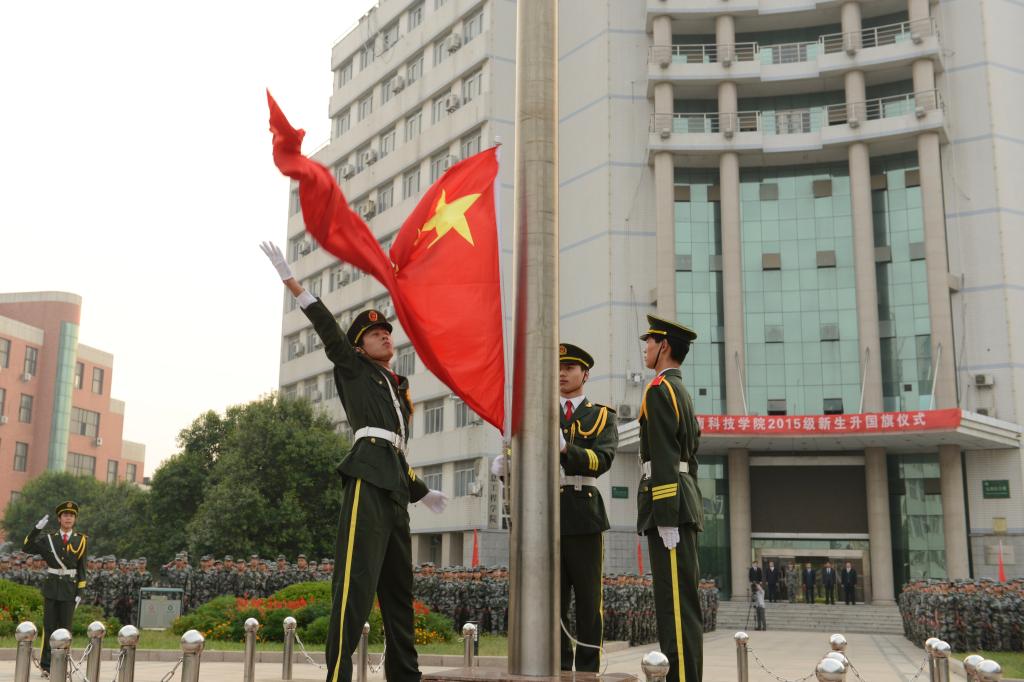 晨曦初露,金风送爽。9月21日早上,我校在致远广场隆重举行2015级新生升国旗仪式。校党委副书记宋亚伟出席升旗仪式,军训团团长宋海伟,我校党委宣传部、学工部、武装部、校团委等相关单位负责人,以及全体帮训教官、军训连指导员和8000余名2015级新生参加升国旗仪式。升国旗仪式由党委宣传部部长姚刚主持。