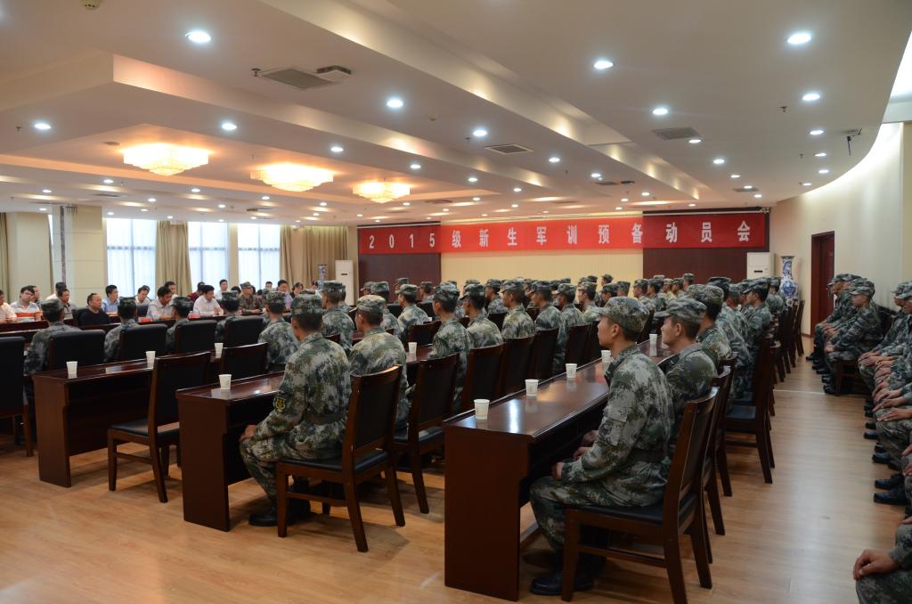 会议宣布了军训团成立,通报了军训团编制情况,部署了2015级新生军训工作。今年我校8000余名新生将分为17个连队参加军训,军训时间从9月16日持续到9月25日,军训内容包括队列训练、内务整理、军事理论学习、军歌学习等。