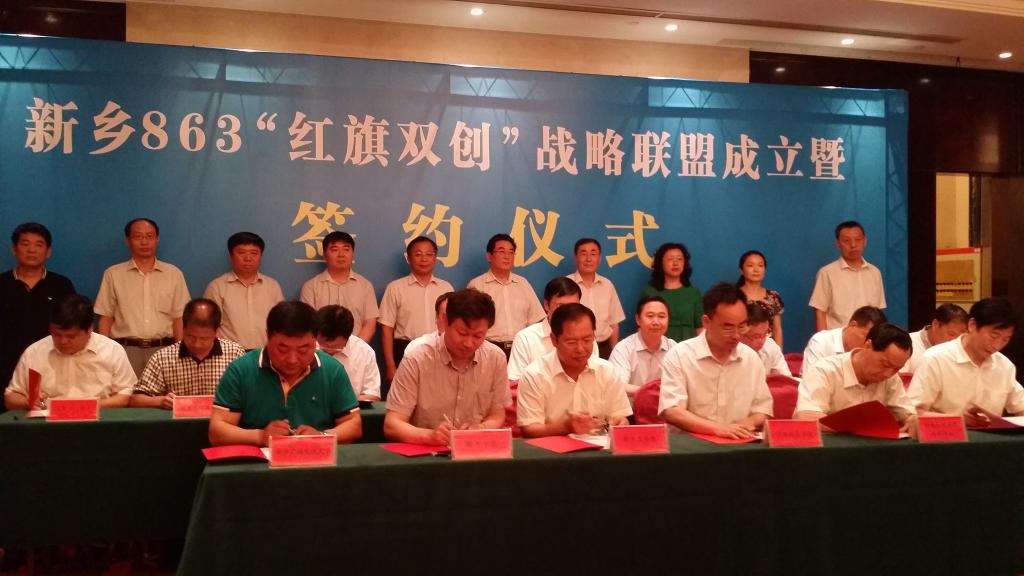 新乡863科技产业“双创”战略联盟由国家863新乡科技产业园与河南省青少年发展服务中心、省生产力促进中心、新乡市红旗区政府、河南科技学院及新乡学院等15家单位共同发起成立,旨在实现资源共享、优势互补、共同发展。