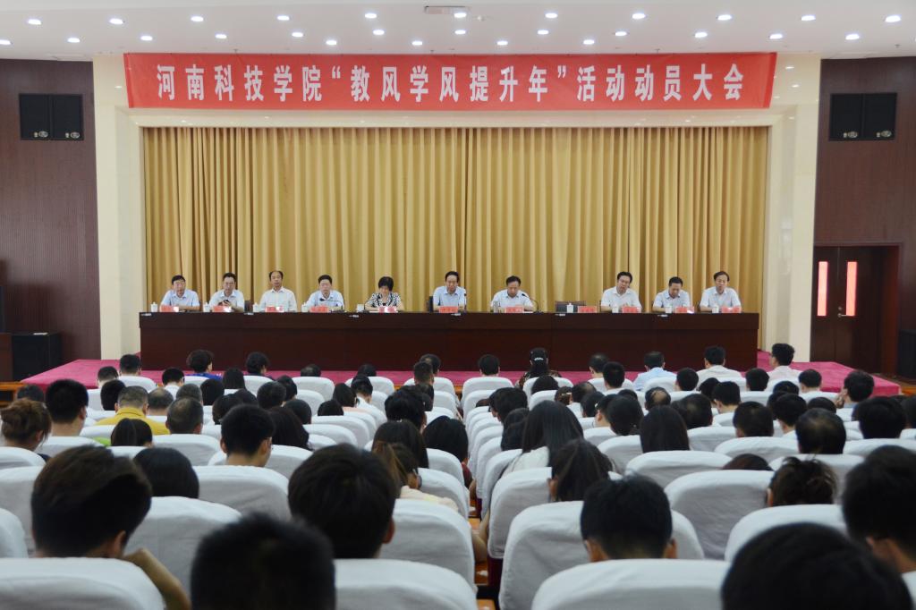 6月26日上午,我校在办公楼三楼多功能报告厅召开“教风学风提升年”活动动员大会。全体校领导出席会议。相关职能部门负责人,各学院党委书记、副书记、院长、教学副院长、教学秘书、团委书记、辅导员、教研室主任代表及学生代表近300余人参加了会议。