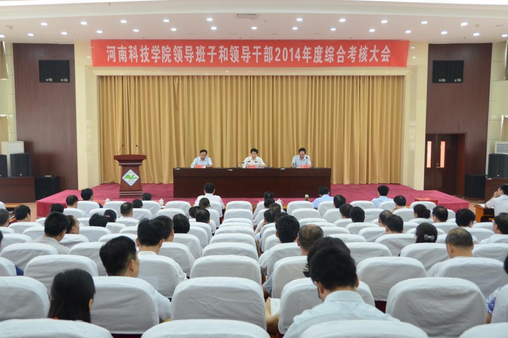 6月15日,省管高校领导班子和领导干部2014年度省管高校考核组第三组组长、河南理工大学原党委书记王少安一行7人莅临我校,对我校校级领导班子和领导干部进行年度综合考核。我校在办公楼三楼多功能报告厅举行校级领导班子和领导干部2014年度综合考核大会。全体校级领导、学校中层正职、省级以上党代表、人大代表、政协委员、省辖市以上民主党派负责人、教师代表共116人参加了会议。