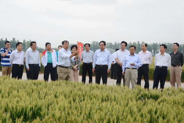 看了千亩基地多种小麦品种的生长情况后,牛书成说,茹振钢教授培育的百农系列小麦品种代表着学校的科技创新特色和水平,这是学校发挥优势、主动融入,为中原经济区建设担大任、做贡献的底气所在。他希望茹振钢教授加快杂交小麦的大规模产业化应用,为提升我国杂交小麦种业的国内国际竞争力,也为国家粮食核心区建设和国家粮食安全做更大的贡献。