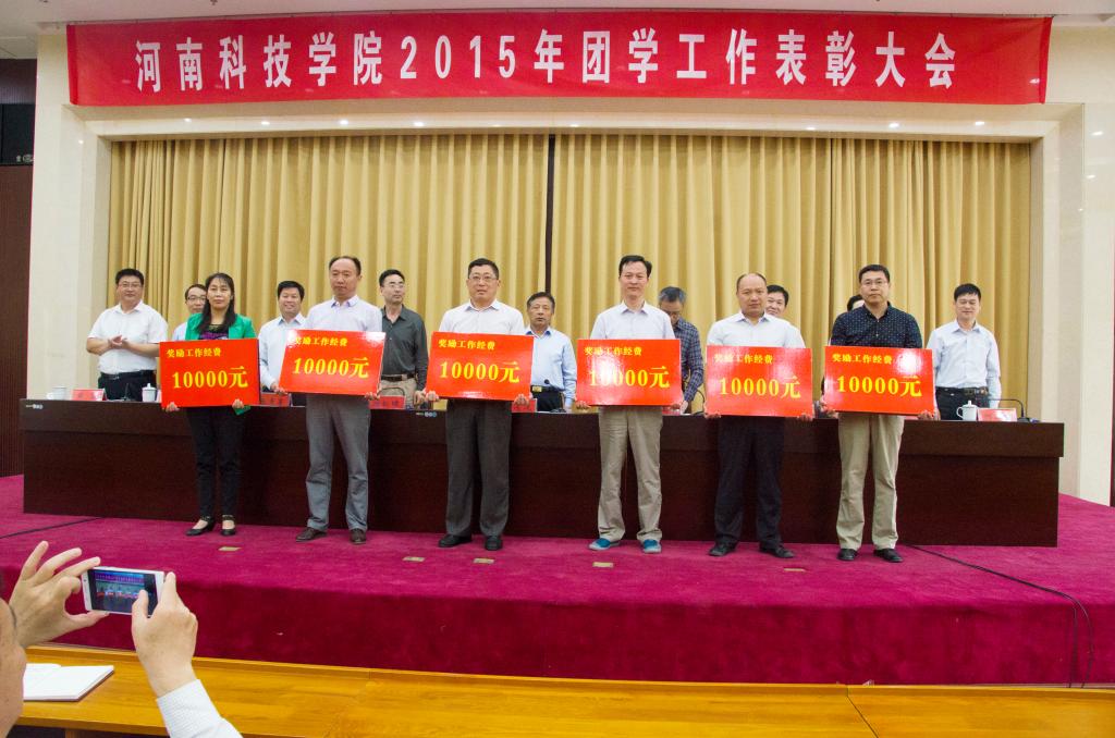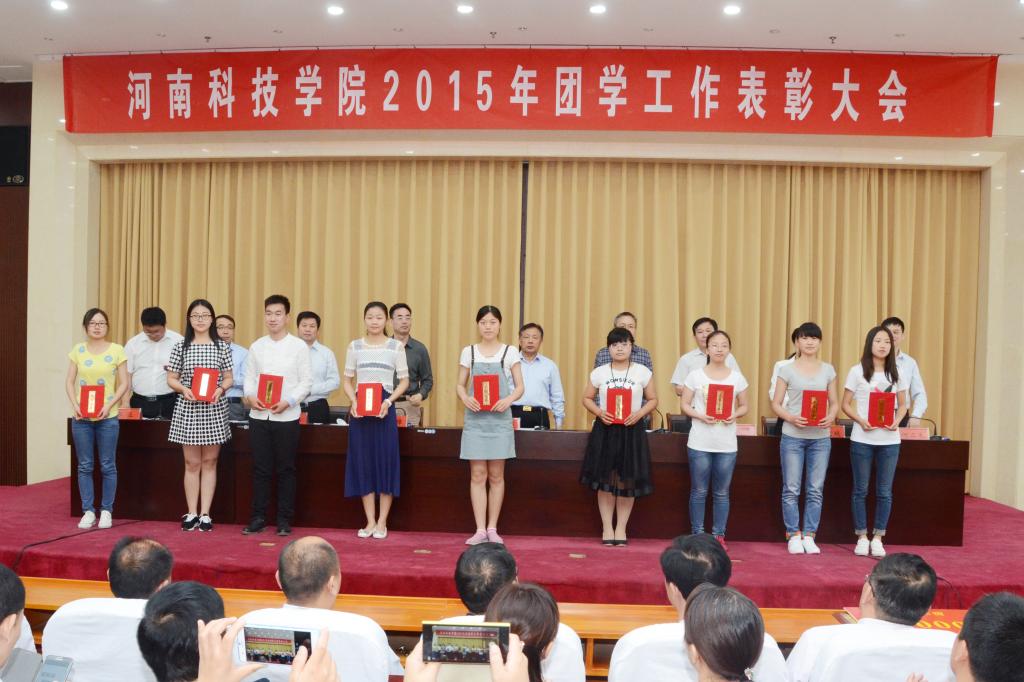 会议宣读了校党委、校行政《关于表彰2014年度学生工作先进单位和个人的决定》、《关于表彰2014-2015学年“优良学风班”、“三好学生”等先进集体和先进个人的决定》、《关于表彰五四红旗团委、模范团干部等先进集体和先进个人的决定》和《关于表彰就业工作先进集体的决定》。在欢快的乐曲和热烈的掌声中,2014年学团工作中表现突出、受到表彰的先进集体和个人代表依次上台领奖。