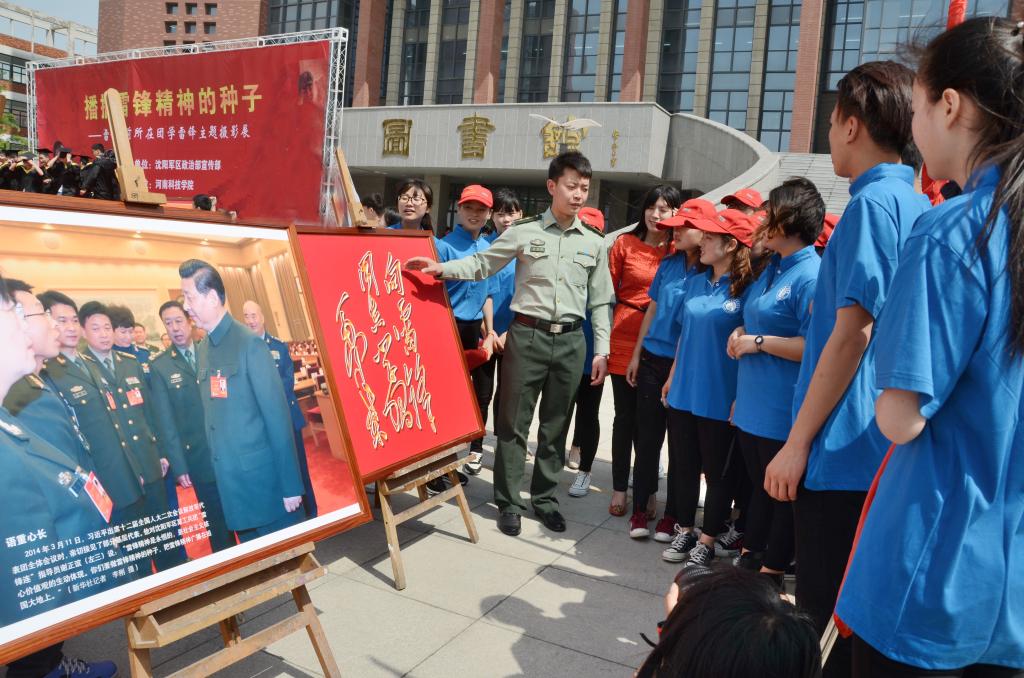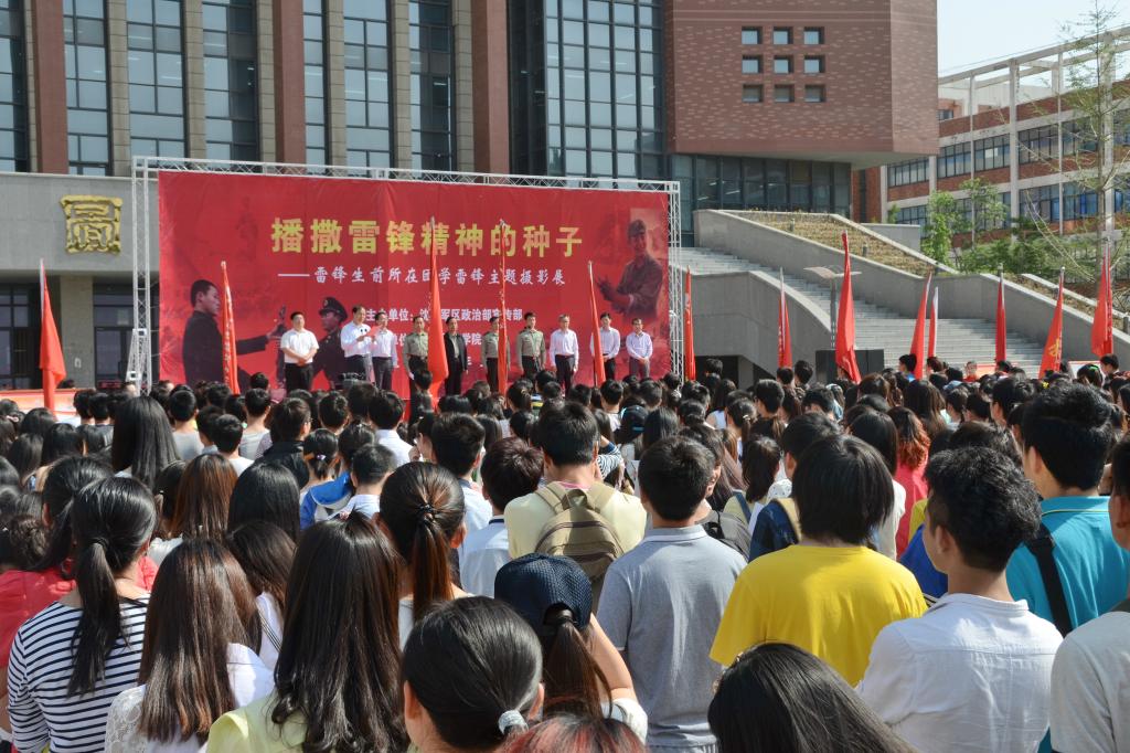 为贯彻落实习近平总书记“做雷锋精神的种子,把雷锋精神广播在祖国的大地上”重要讲话精神,推动学雷锋活动蓬勃开展,沈阳军区和我校联合举办了“播撒雷锋精神的种子”——雷锋生前所在团学雷锋主题摄影展。5月15日上午,摄影展开幕式在新图书馆前启智广场举行。解放军报高级记者、中国新闻摄影协会副主席江志顺少将,沈阳军区政治部宣传部摄影办主任盖旭辉大校,沈阳军区雷锋纪念馆馆长张维祥,雷锋生前所在团雷锋班第24任班长黄帮维,校党委副书记宋亚伟,副校长杨松璋、梅宪宾出席开幕式,党委宣传部、学工部、校团委等单位负责人及各基层党委、党总支书记、副书记,各分团委书记,机关干部,各学院学雷锋志愿者代表1000余人参加了开幕式。