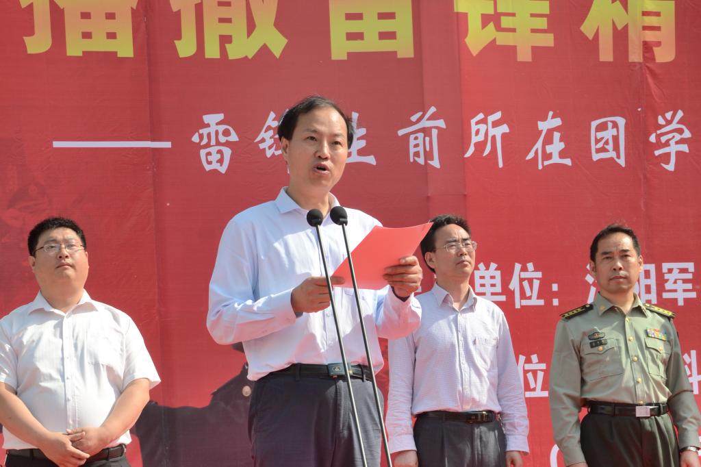 杨松璋致开幕辞。他说,多年来,我校始终将开展学习雷锋活动,弘扬雷锋精神作为思想政治工作的重要抓手,作为扎实推进精神文明建设工作的基础工程。在学雷锋过程中着力加强宣传教育,使“知雷锋、爱雷锋”的种子内化于心;不断丰富方式方法,让“学雷锋、做雷锋”的种子外化于行;大力完善工作机制,将“研究雷锋、弘扬雷锋精神”的种子固化于制。以“文明礼貌月”“学习雷锋活动月”志愿者服务活动、暑期三下乡活动为主线,以主题团日、观看雷锋电影、传唱雷锋歌曲、校园绿化、教室美化等活动为载体,不断完善志愿服务制度,挖掘雷锋式先进典型,深入开展学雷锋活动。学校共有雷锋志愿服务队、爱心协会、大手拉小手协会、义务家教社等学雷锋志愿服务类社团10余个。如今,学雷锋、做雷锋已成为师生员工的自觉习惯和校园风尚,雷锋精神的种子已深深扎根于校园之中,成为凝聚学校发展动力、推动学校快速发展的宝贵精神财富。