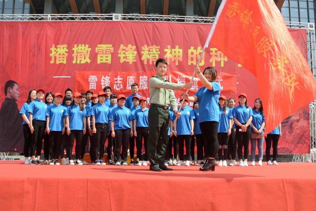 启动仪式结束后,黄邦维将雷锋志愿服务队旗帜郑重地交到我校雷锋志愿服务队队长、服装学院王文娟同学手里,并和全体队员在队旗下进行了庄严的雷锋精神宣誓。新科学院举行了“弘扬雷锋精神,践行社会主义核心价值观”签名仪式和主题晚会。