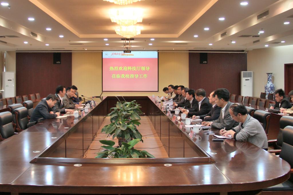 王清连代表学校对何守法一行的到来表示热烈欢迎,并对省科技厅多年来对我校的支持与帮助表示衷心感谢。