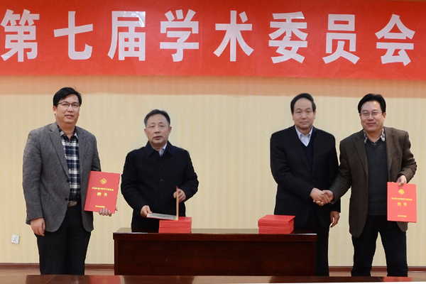王清连宣布了我校第七届学术委员会和学部学术委员会名单。校党委书记牛书成、校长王清连代表学校向与会委员颁发了聘书。