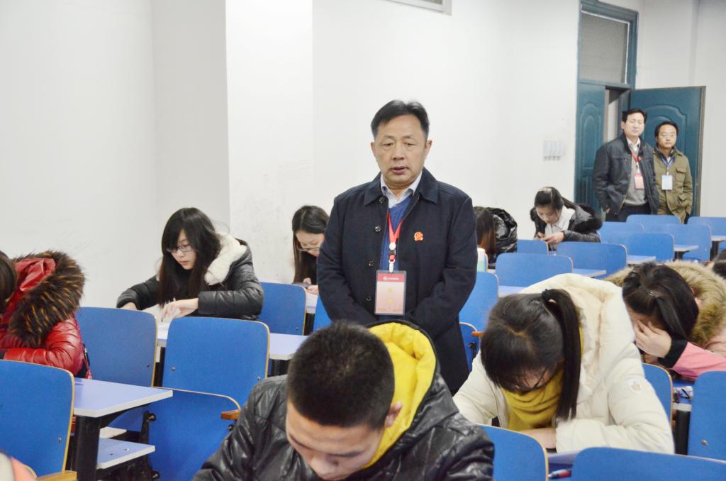 1月19日,2014-2015学年第一学期期末考试工作拉开序幕。校党委书记牛书成、校长王清连分别在党办、校办、发规处、教务处、督导办、相关学院负责人的陪同下亲临考试现场巡视考试工作。