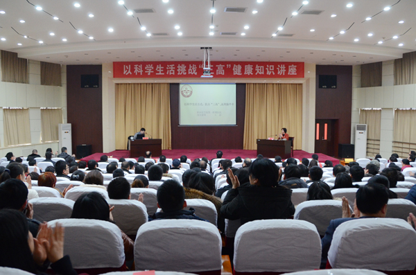 为增强广大干部职工的自我保健意识,帮助大家树立良好的健康理念、掌握必要的健康知识,1月14日下午,我校邀请新乡医学院第一附属医院内分泌糖尿病科副主任、副主任医师王涛在办公楼三楼多功能报告厅作了题为《以科学生活方式 抗击“三高” 远离脑卒中》的健康知识讲座。校党委书记牛书成、党委副书记张玉珍、副校长王舜书出席讲座,部分处级干部、教授、博士、科级干部、教职工代表等300余人聆听了讲座。