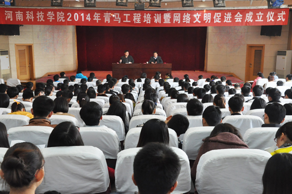 11月26日,我校2014年青年马克思主义者培养工程培训班暨大学生网络文明促进会成立仪式在图教201举行。校团委相关负责人、各学院团委书记、辅导员和网络文明促进会学生骨干代表300余人参加了成立仪式。